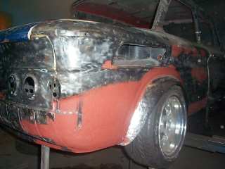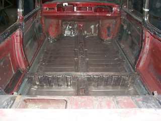 2 Schweller, 2 Innenschweller, komplette Bodengruppe, verstärkte Hinterachs-Aufnahme, Vorderachs-Aufnahme, Tankwanne, Abdeckung für 2-Kreis-HBZ, 4 Radhäuser, 4 Radläufe, die Radläufe wurden dann von Hand gedengelt für SPIESS-Felgen, vorne 8" + hinten 9"